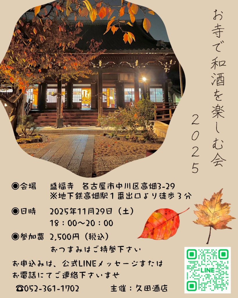 イベント「お寺で和酒を楽しむ会 2025」開催のお知らせ